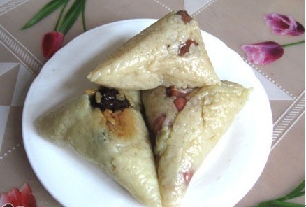 做法:將糯米泡一夜,然后把花生米、豇豆泡6小時(shí)以上,五花肉切塊加醬油、姜、料酒、糖和鹽漿一夜。把粽葉泡軟,取一片粽 葉折出一個(gè)三角,放一勺米,再放豆、花生米、肉和棗,最后再放一勺米。用手壓實(shí)米,把粽葉從上往下折疊,疊成三角形,用 棉線綁結(jié)實(shí)。在高壓鍋放進(jìn)沒過粽子的水,上面壓一個(gè)盛水的盆,蓋好鍋蓋,扣限壓閥燒開一個(gè)半小時(shí)即可。